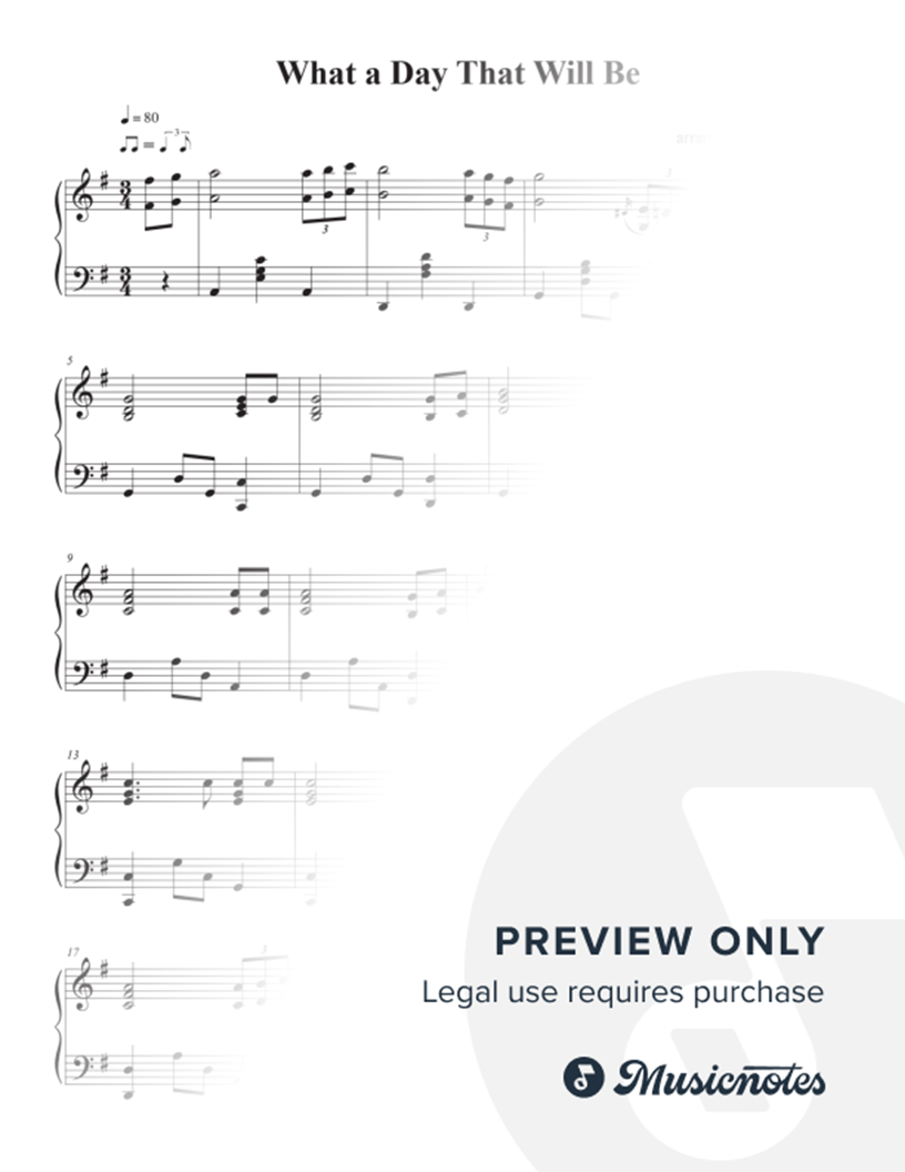 This is a late-intermediate, early-advanced piano arrangement of the gospel song "What a Day That Will Be" originally written by Jim Hill and made famous by the Cathedrals, the Gaithers and many other gospel artists. It is the perfect prelude, offertory or postlude for your upcoming church service!