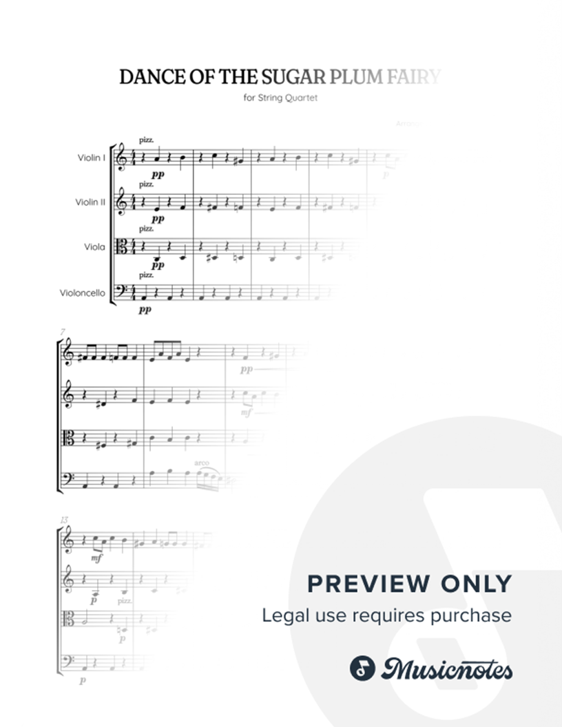Tchaikovsky • Dance of the Sugar Plum Fairy • string quartet sheet music |