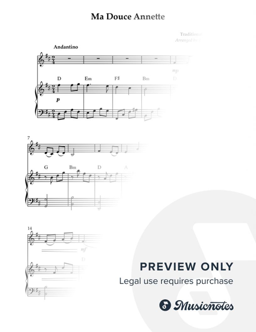 For violin solo and piano accompaniment with chords. Separated solo part is included.