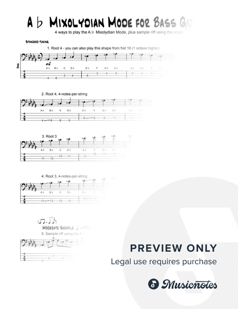 This sheet will show bassists 4 ways to play Ab Mixolydian Mode: