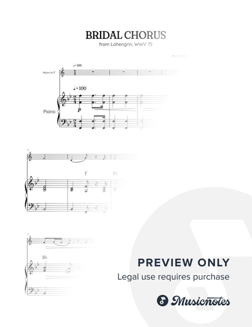 Wagner • Here Comes the Bride (Bridal Chorus) from Lohengrin • french horn sheet music with piano accompaniment [chords] |