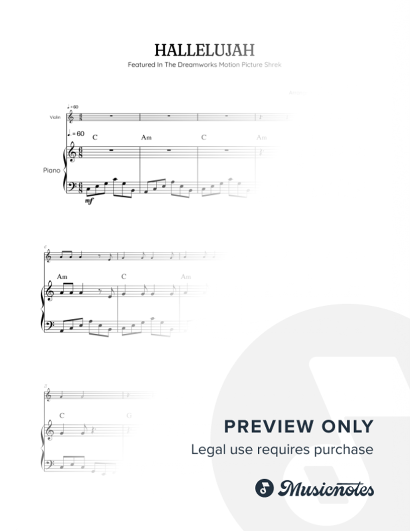 Cohen • Hallelujah from Shrek Soundtrack • violin sheet music with piano accompaniment [chords] |
