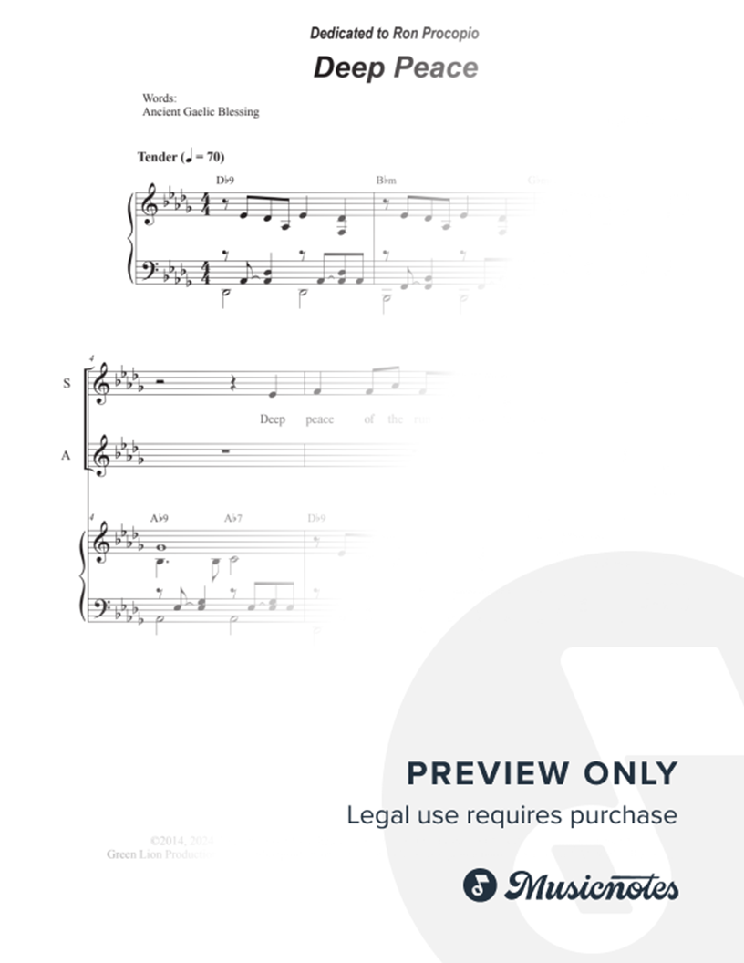 This tender setting of the traditional Gaelic blessing is scored for SAB with Piano accompaniment. Accessible and appropriate for any church setting. Price includes a 5-copy limit print license.