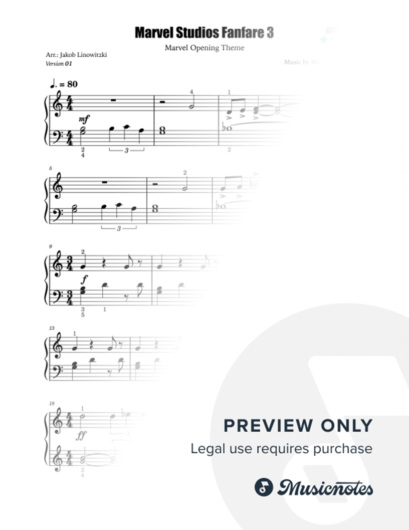 Marvel Studios Fanfare 3 (Marvel Intro Theme) - Piano Cover for Beginner (3/5) - version 01 |