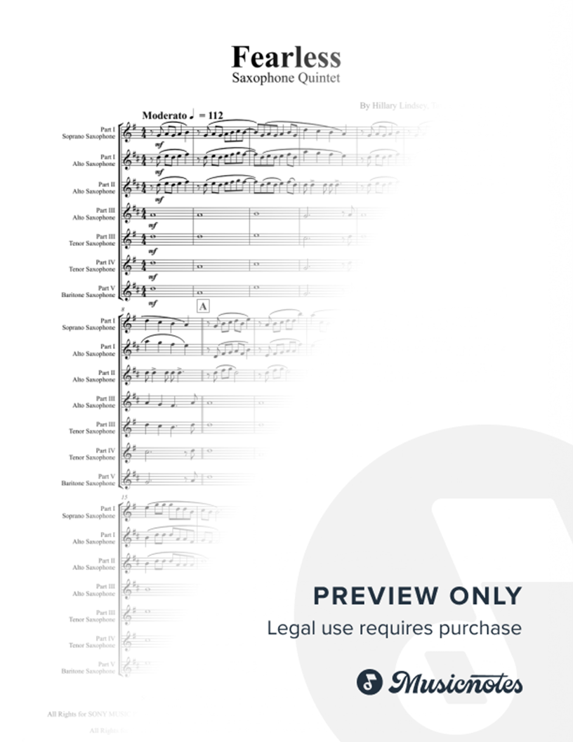 Fearless - Taylor Swift - Saxophone Quintet - F |