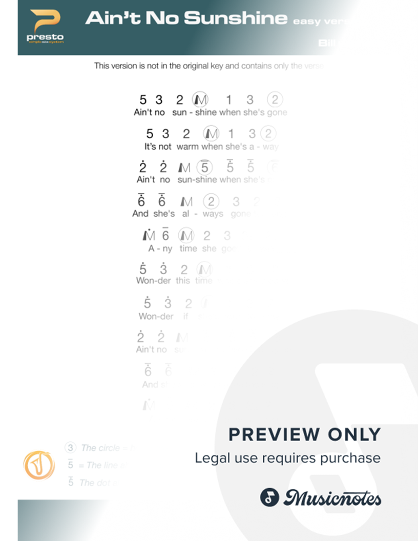 This is an arrangement of Bill withers' 'Ain't No Sunshine‘ for saxophone using the revolutionary Presto Saxophone System. Presto is the quickest way to master songs on the saxophone without using music notation.