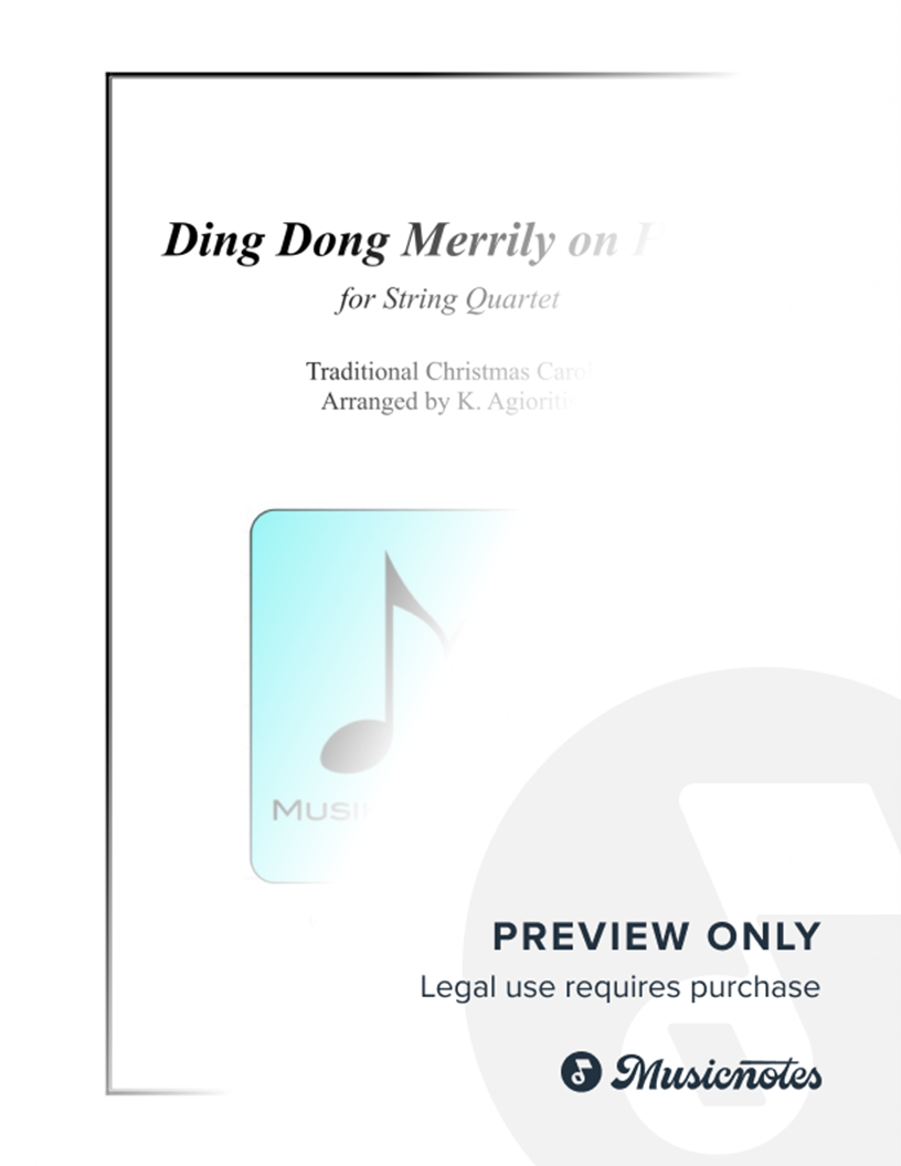 This traditional arrangement of 'Ding Dong Merrily on High' is scored for String Quartet (with optional violin 3 subsitute for viola part). This bright and well-loved tune will be an uplifting addition to your Christmas performance repertoire. Download includes score and a full set of parts.