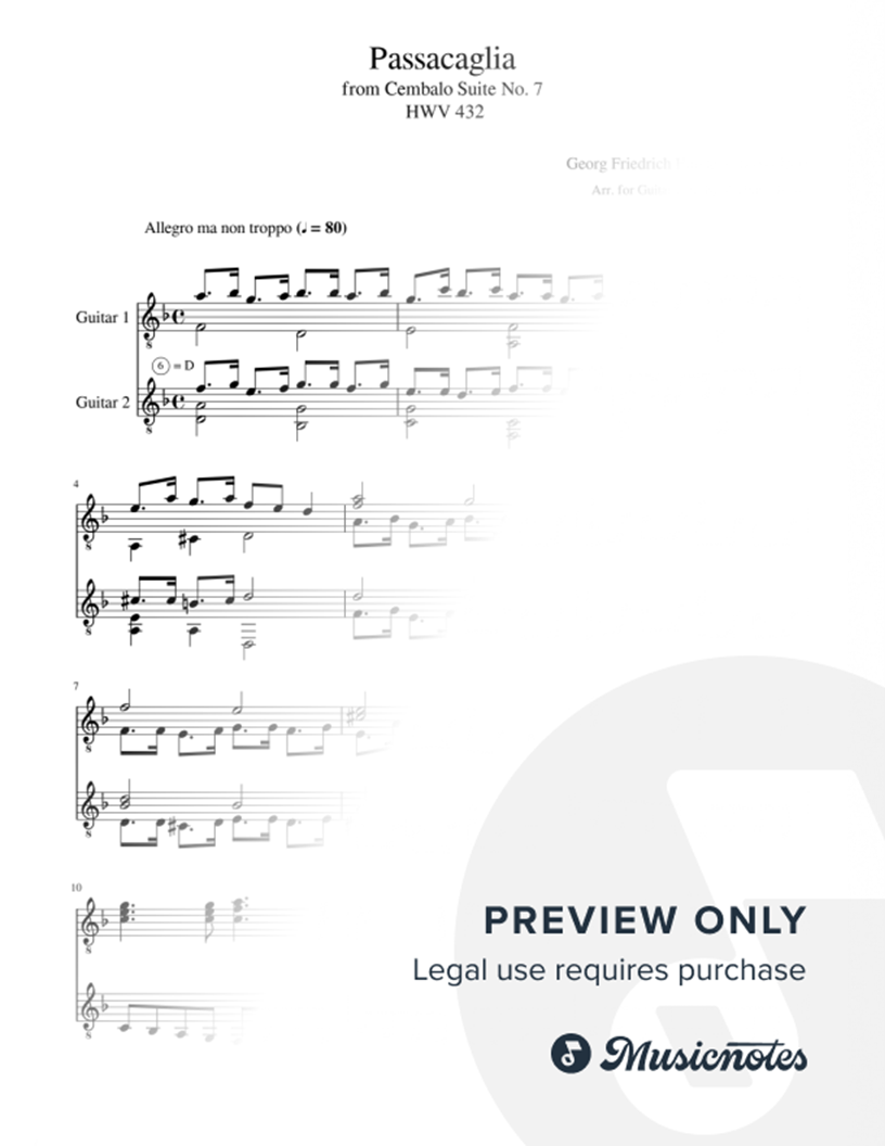 Passacaglia - G. F. Händel, Arr. for Guitar Duet, updated 2024 |
