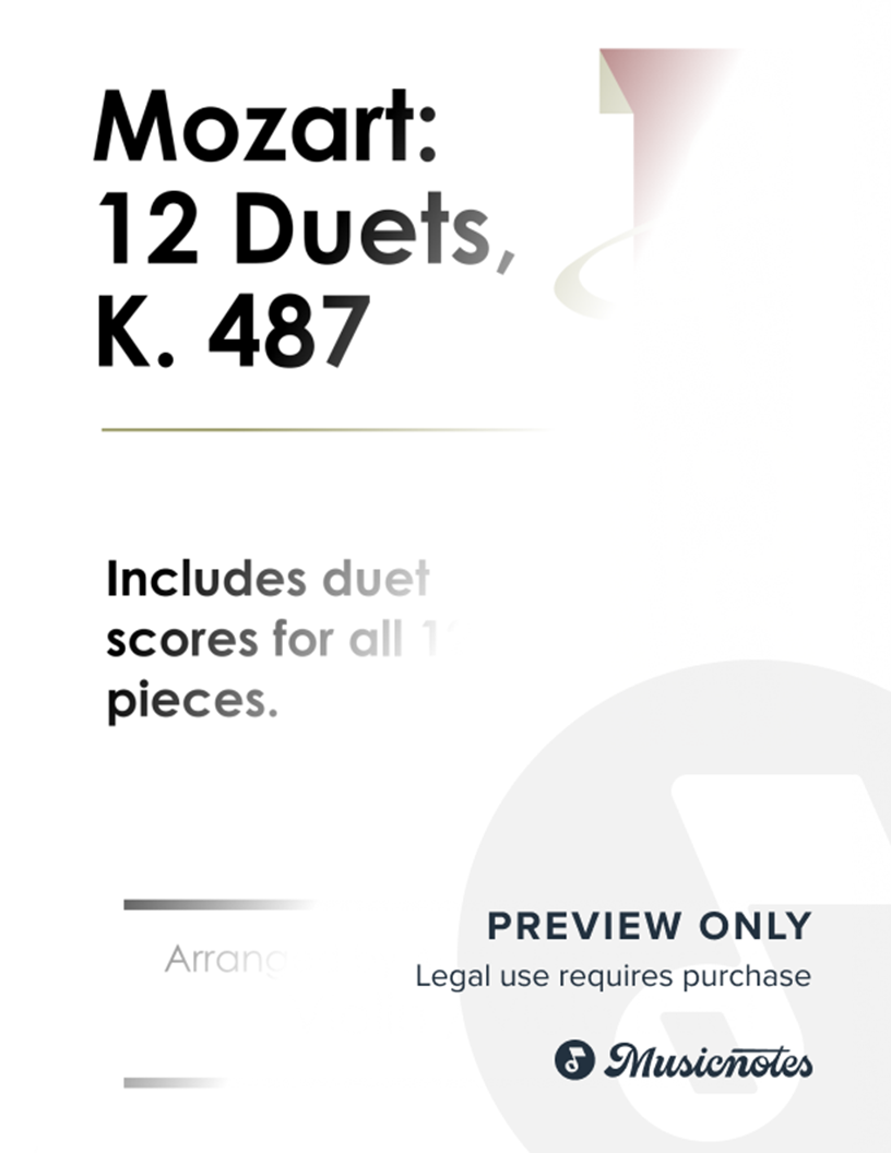 Mozart composed these 12 duets for two horns and published them in 1786 in the key of C. I have carefully rearranged them here, changing the key and including appropriate articulations to suit the instruments. This product contains all twelve duets at a fantastic price.