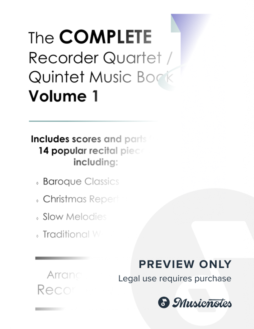 This is a mega-bundle of recorder quartet and quintet repertoire, totalling 14 pieces and over 120 pages of music. Full scores and parts are provided for all pieces, covering Christmas music, slow melodies, traditional Welsh melodies and baroque classics.