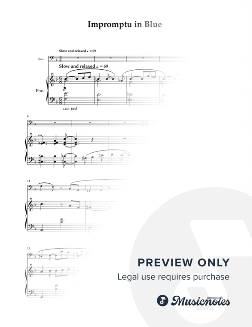 Impromptu in blue is a short concert piece in lazy 6/8 time. I wanted the melody to be simple and memorable with a gentle support in the harmonies.