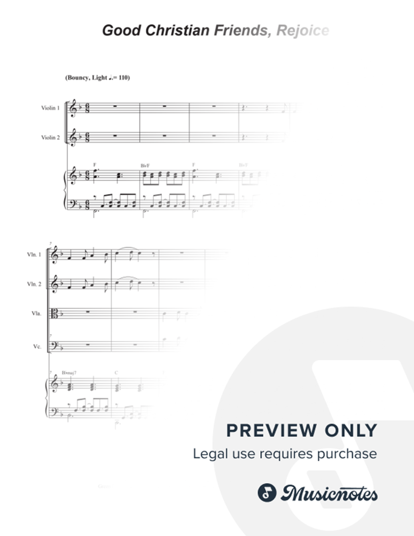 This bouncy and light setting of the popular Christmas carol has been freshly arranged for a String Quartet (Violin (2), Viola, Cello) with Piano accompaniment. Accessible and appropriate for any church or concert setting.