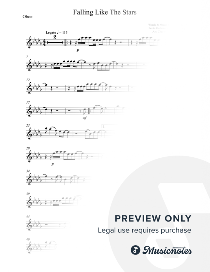 Falling Like the Stars - James Arthur - OBOE (full version, original key) |