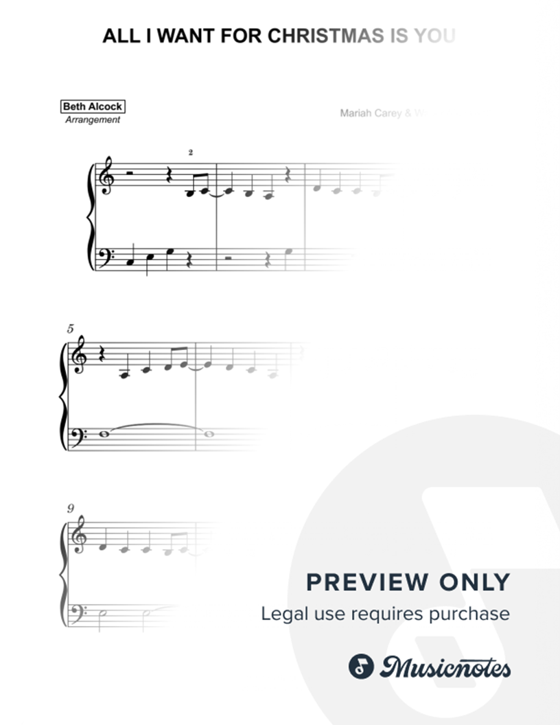 An easy piano arrangement of “All I Want for Christmas Is You” with simplified rhythms and steady hand positions, perfect for early players. This version keeps the melody bright and recognisable while staying friendly for students at method-book level.