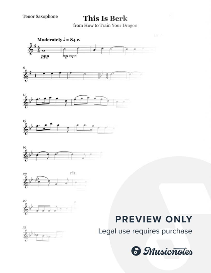 This intermediate arrangement of This Is Berk (from How to Train Your Dragon) by John Powell for solo tenor saxophone fits perfectly both with the Sheet Music Boss official piano version and with the original track. Play along with SMB today!