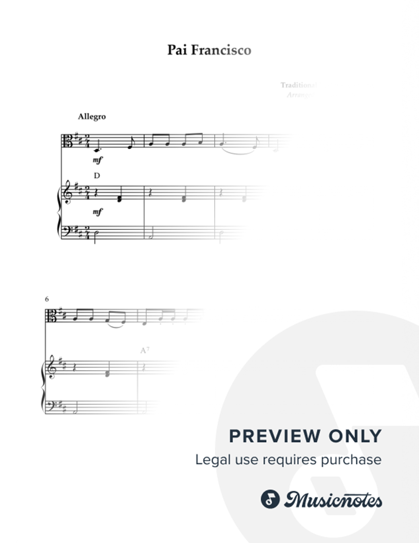 For viola solo and piano accompaniment with chords. Separated solo part is included.