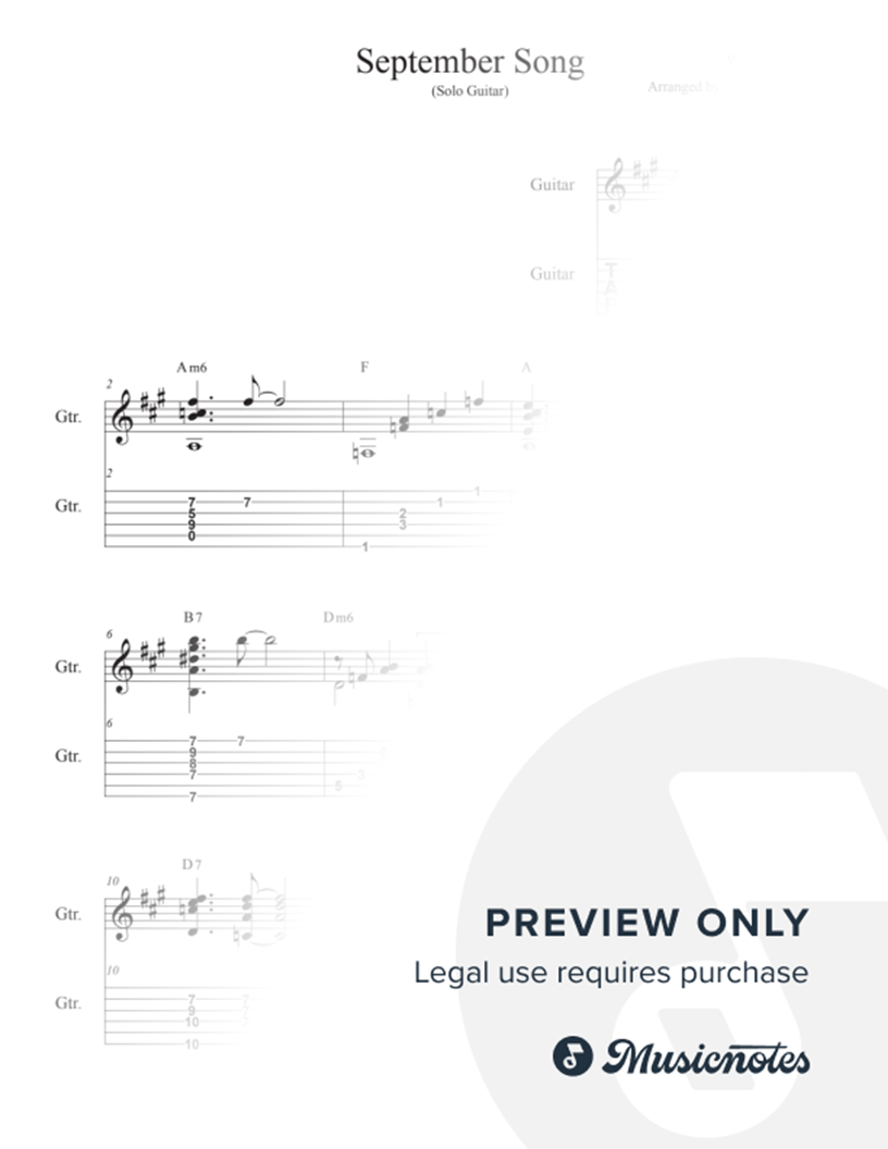 Solo guitar arrangement (chord melody) influenced by Ted Greene for intermediate to advanced level players. This arrangement is one and a half choruses. The B and last A sections of the second chorus modulate to the key of C.