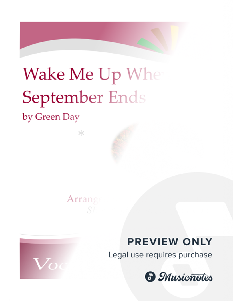 Green Day song, written by Billie Joe Armstrong about the death of his father when he was 10 years old. Arranged here for SB and piano in a creative and satisfying arrangement. Price includes a 5-copy limit print license.