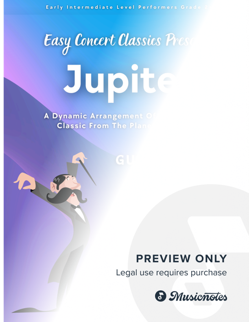 Discover the power and spectacle of this timeless classic suitable for general concerts, festivals and more formal occasions. This accessible arrangement of Holst’s Jupiter from the Planets Suite is skilfully crafted for Guitar Trio. Includes both TAB and Traditional notation.