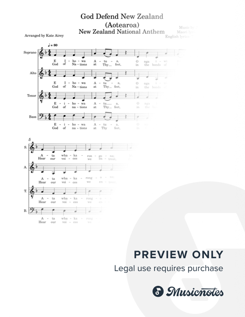 SATB Choral Arrangement of the New Zealand National Anthem.