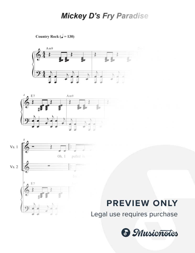 This song, "Mickey D’s Fry Paradise," is a lighthearted, comedic ode to McDonald's French fries. It's playful and filled with over-the-top humor about the speaker's obsession with fries, treating them like the love of their life. Price includes a 5-copy limit print license.