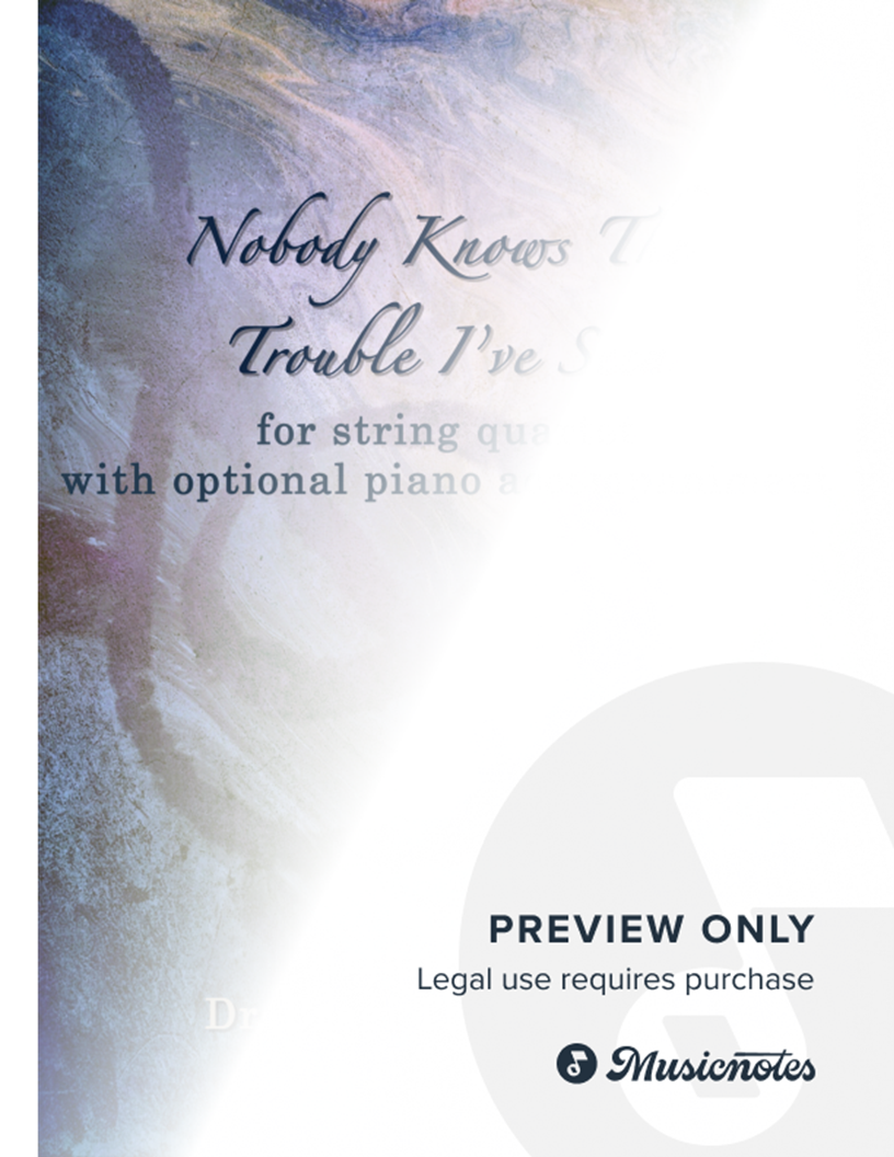 An arrangement of the African-American spiritual Nobody Knows The Trouble I've Seen for String Quartet with optional Piano accompaniment.