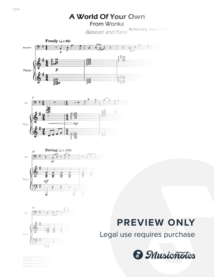 A World Of Your Own from Wonka. Arrangement for Bassoon and Piano. With Full Score and Individual Parts. Enjoy it!