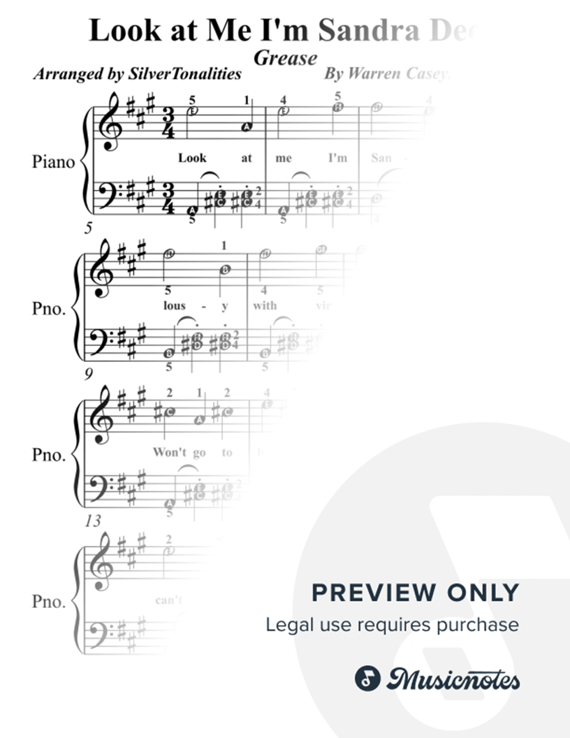 Look at Me, I'm Sandra Dee Easy Piano |