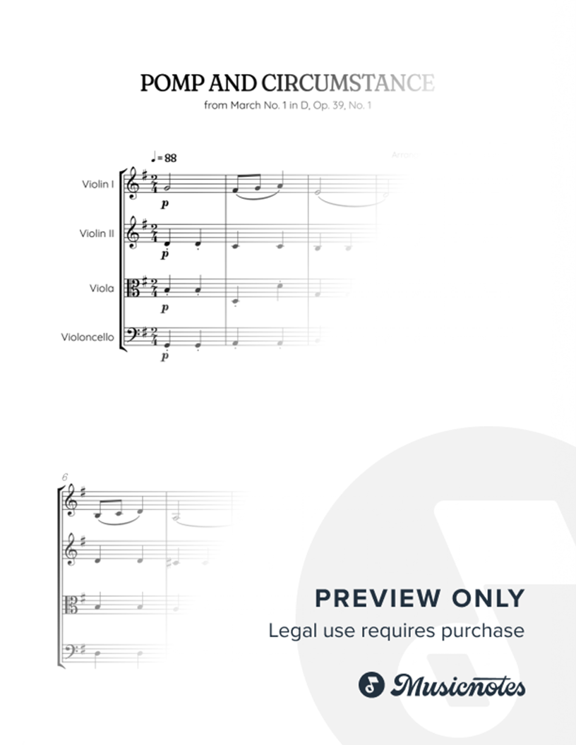 Elgar • Pomp and Circumstance | string quartet sheet music