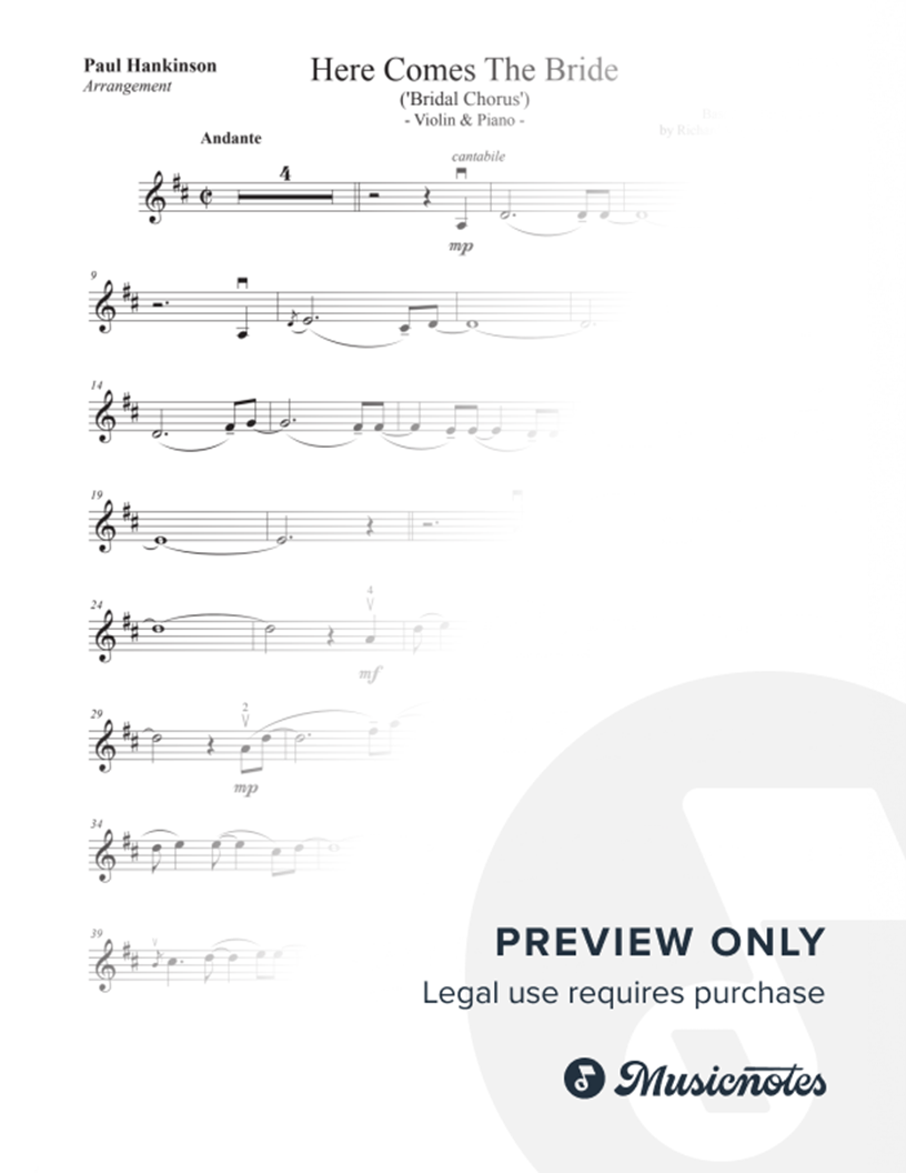 I hope you enjoy learning and playing my arrangement of "Here Comes The Bride" - a modern, elegant version of Wagner's "Bridal Chorus". Both the violin and piano score is included. The violin part includes fingerings and bowings by Clara Tietz.