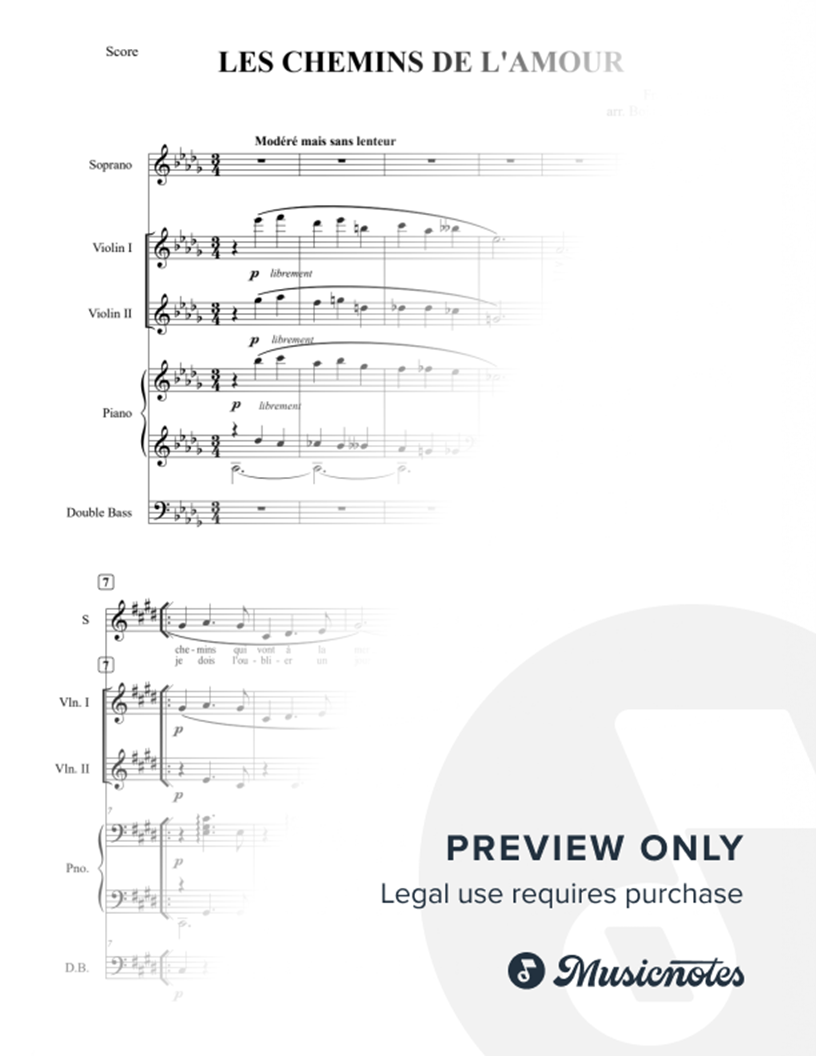Arrangement for Voice, 2 Violins, Piano & Doublebass by Bojan Mladenovic - Complete Score & Parts in pdf file
