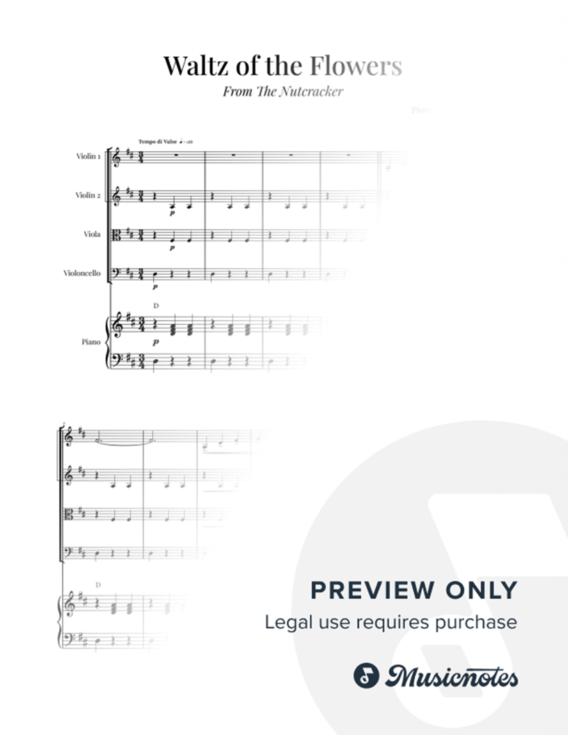 Waltz of the Flowers by Tchaikovsky - String Quartet with Piano Sheet Music