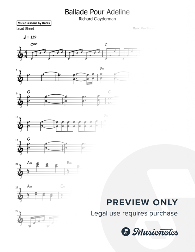 Ballade Pour Adeline (Richard Clayderman) - Lead Sheet