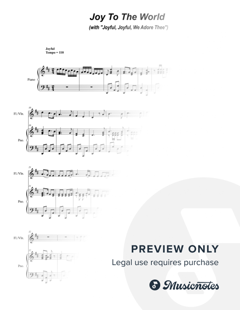Joy To The World (with "Joyful, Joyful, We Adore Thee") (Flute or Violin solo and Piano) |