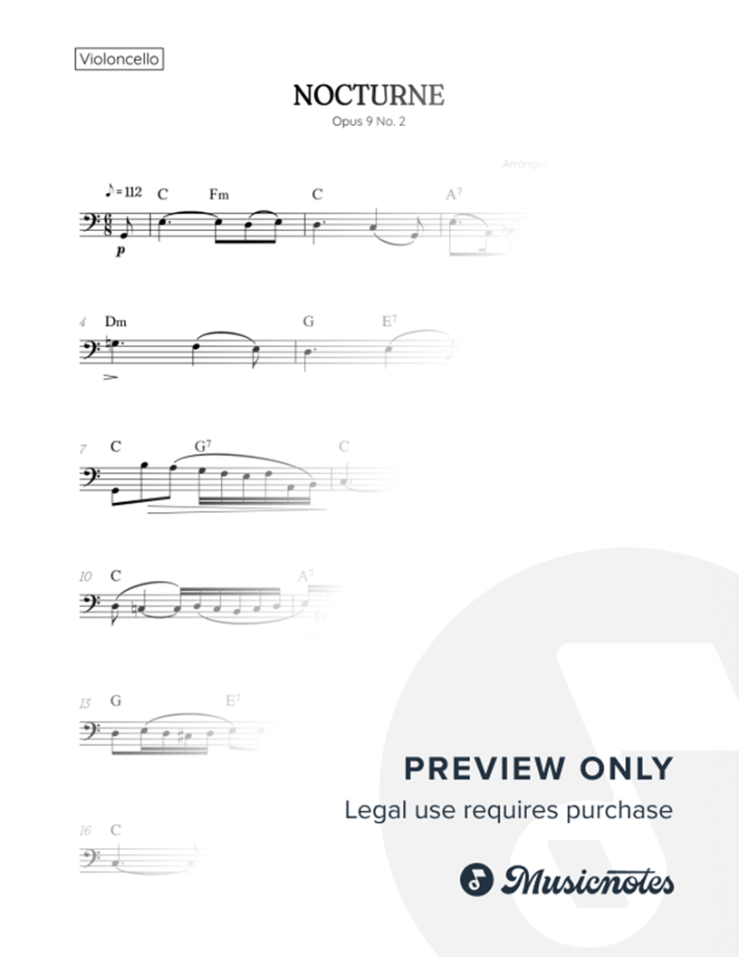 Chopin • Nocturne Opus 9 No.2 | cello sheet music (chords) |