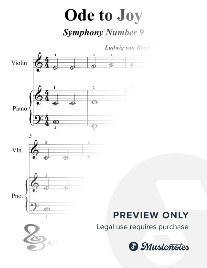 Ode to Joy Symphony Number 9 Easy Violin Sheet Music with Piano |