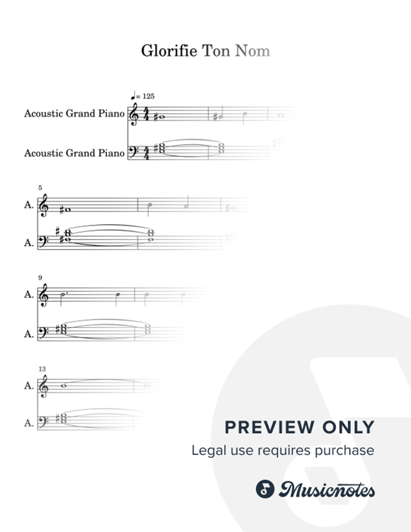 Many of the arrangements on Musicnotes have transpositions available, typically in C Major, as well as 3 sharps and 3 flats. If you do not see your desired key, you can request a transposition by reaching out to Customer Support.