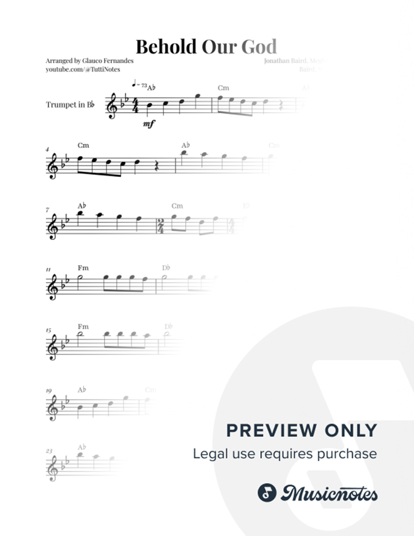 Sheet music for Behold Our God arranged for Trumpet Solo. Professional layout. Clear notation. Perfect for performances. Purchase now!
