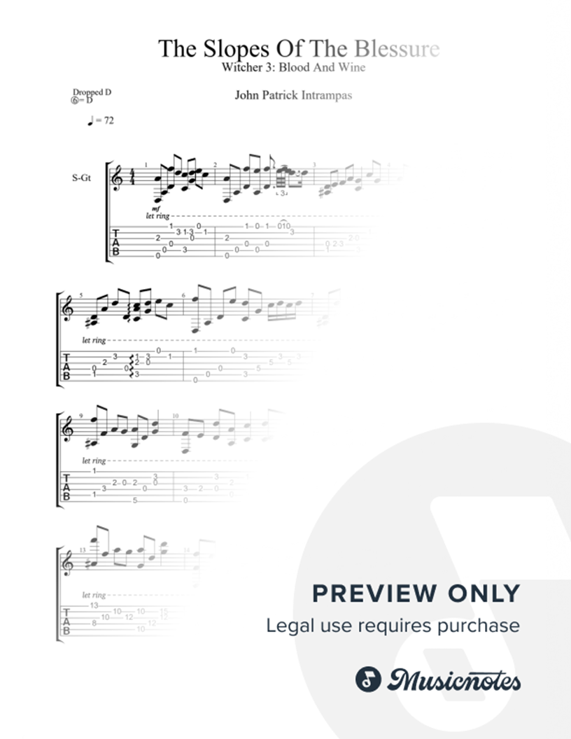 The Witcher 3 Blood And Wine - The Slopes Of The Blessure / Fingerstyle Guitar Tab |