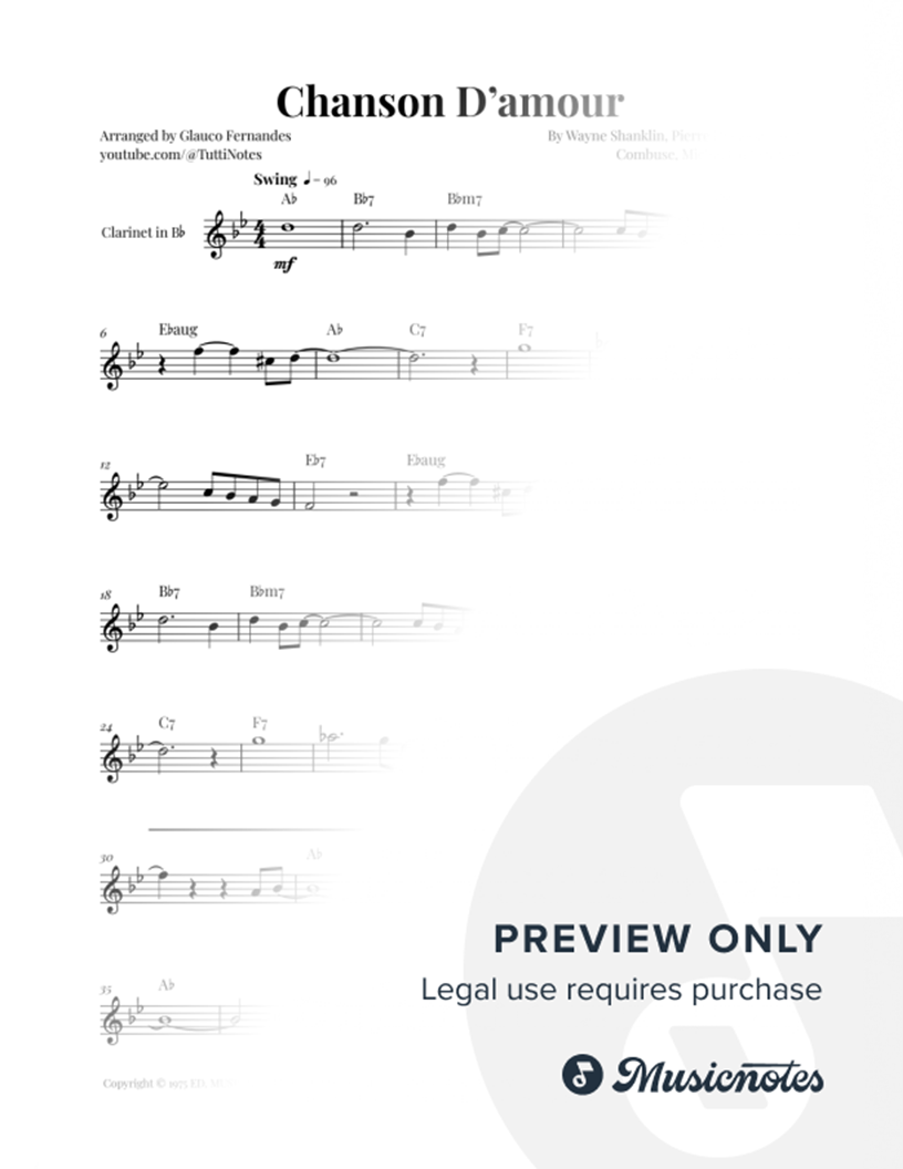 Sheet music for Chanson D'Amour arranged for Clarinet Solo. Professional layout. Clear notation. Perfect for performances. Purchase now!
