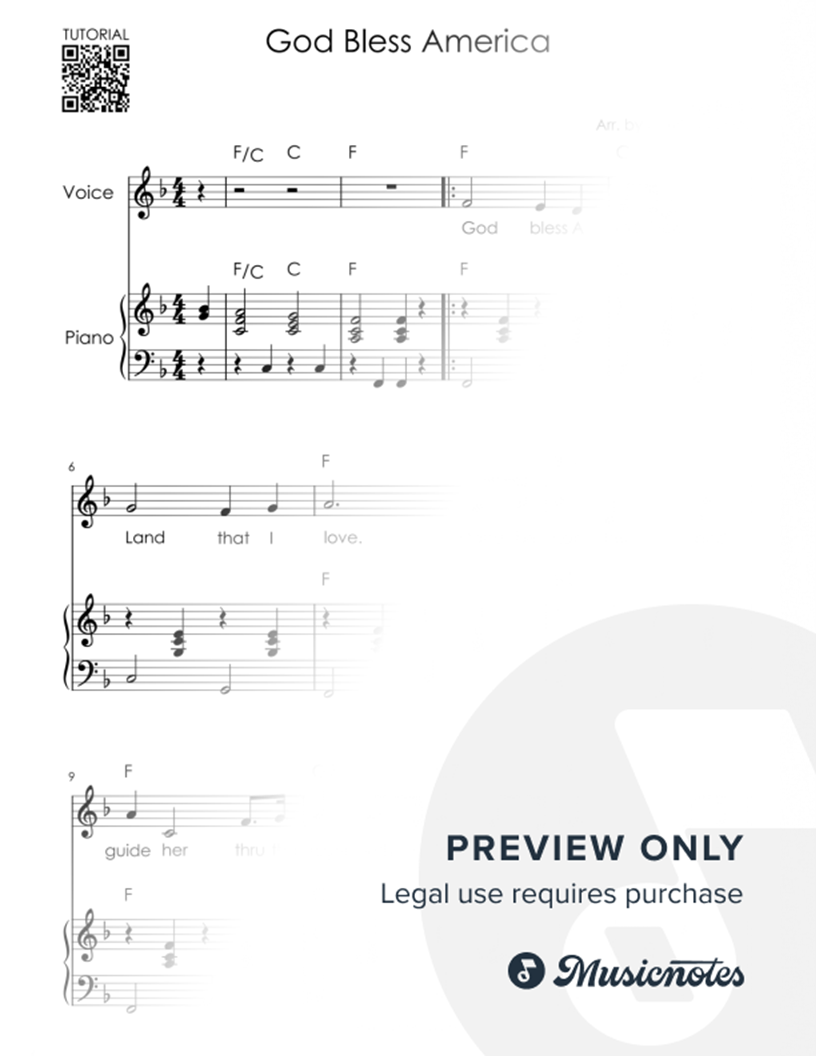 God Bless America Easy - Piano Accompaniment |