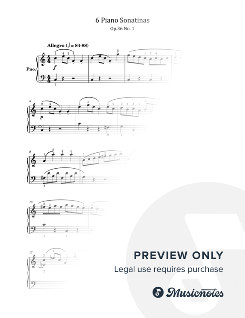 Clementi,Piano Sonatina in C Major,Op.36 No.1,for Piano Solo With Fingering Original |