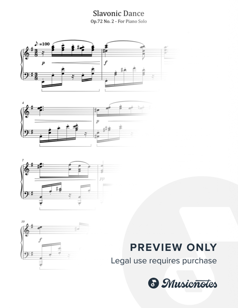 Dvorák,Slavonic Dance,Op.72, No. 2,for Piano Solo |