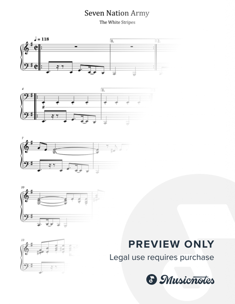 Seven Nation Army, The White Stripes, for Easy Piano, Sheet Music 5 Pages.