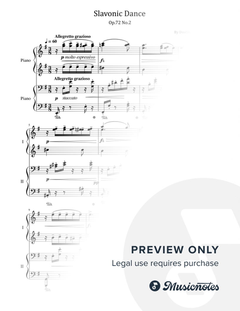 Dvorak, Slavonic Dance Op.72 No.2, for Piano 4 Hands |