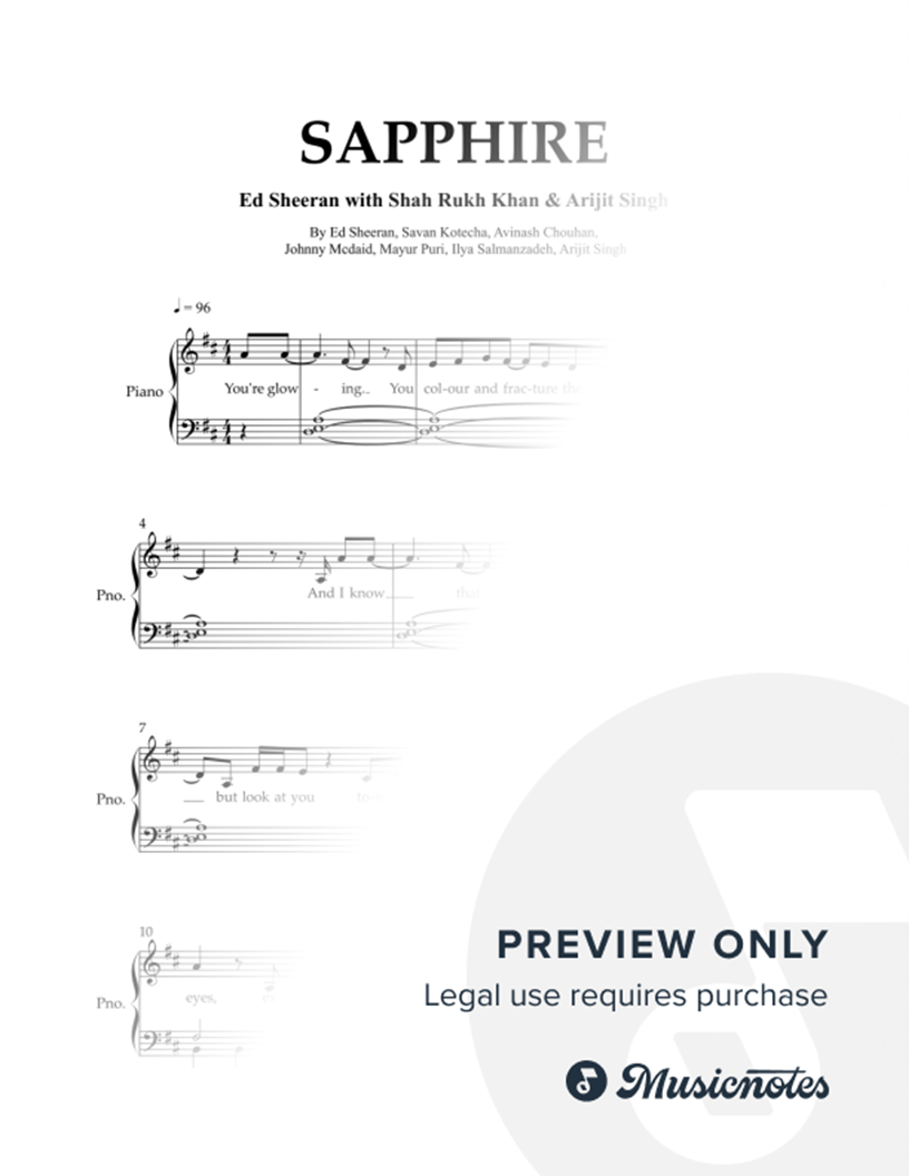 Copyright © 2025 Ed Sheeran Limited, Sony Music Publishing (UK) Limited, Concord Copyrights c/o Concord Music Publishing, Universal Music Corp., Mr. Kanani Songs, Inc., WC Music Corp., Songs Of Wolf Cousins, Arijit Singh Publishing Designee and Avinash Chouhan Publishing Designee All Rights on behalf of Ed Sheeran Limited and Sony Music Publishing (UK) Limited Administered by Sony Music Publishing (US) LLC, 424 Church Street, Suite 1200, Nashville, TN 37219 All Rights on behalf of Mr. Kanani Songs, Inc. Administered by Universal Music Corp. All Rights on behalf of Songs Of Wolf Cousins Administered by WC Music Corp. International Copyright Secured All Rights Reserved |