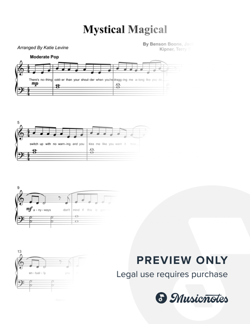Mystical Magical Benson Boone Beginner Piano Easy Transposed Abridged