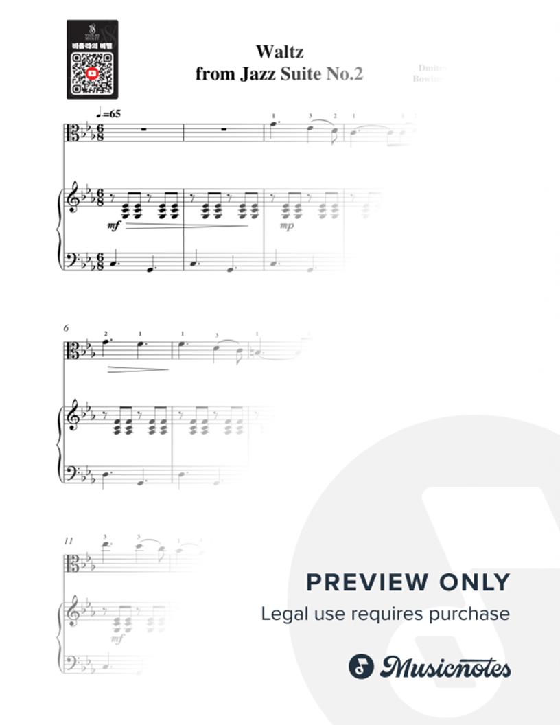 D.Shostakovich. Waltz (From Jazz Suite No.2) for viola and piano |