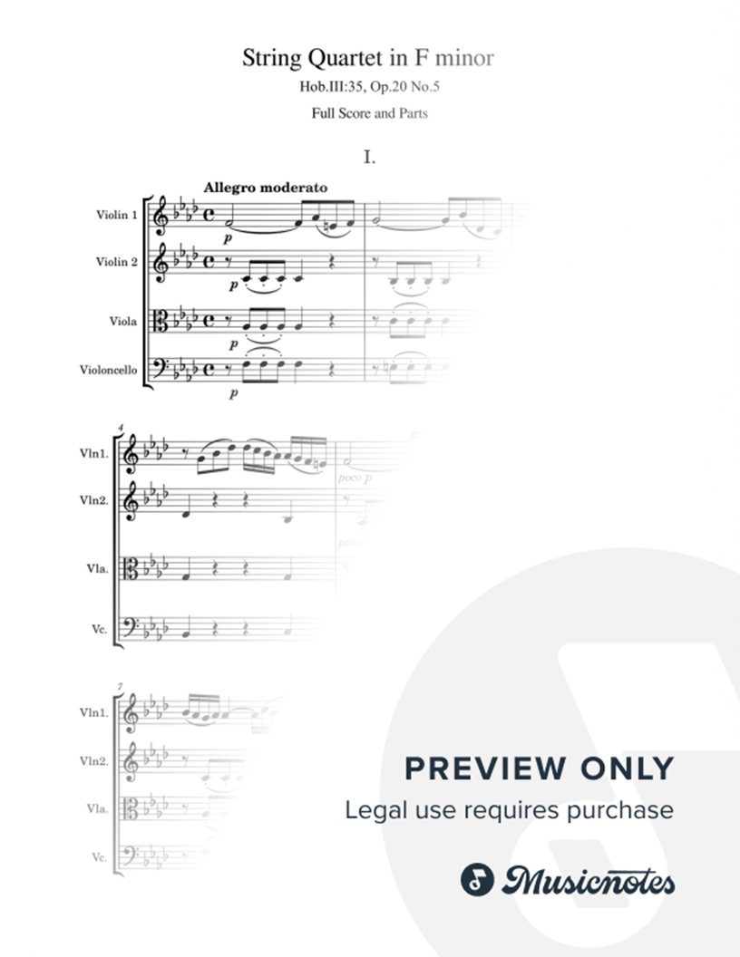 Haydn, String Quartet in F minor, Hob.III 35, Op.20 No.5, Original Full Score and Parts |