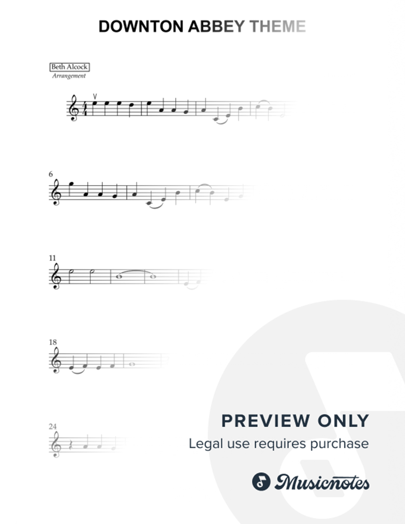 The Downton Abbey Theme, otherwise known as "Did I Make the Most of Loving You?". This is a fairly easy arrangement, and stays in first position. The most difficult skill needed is playing crotchet / quarter note triplets.